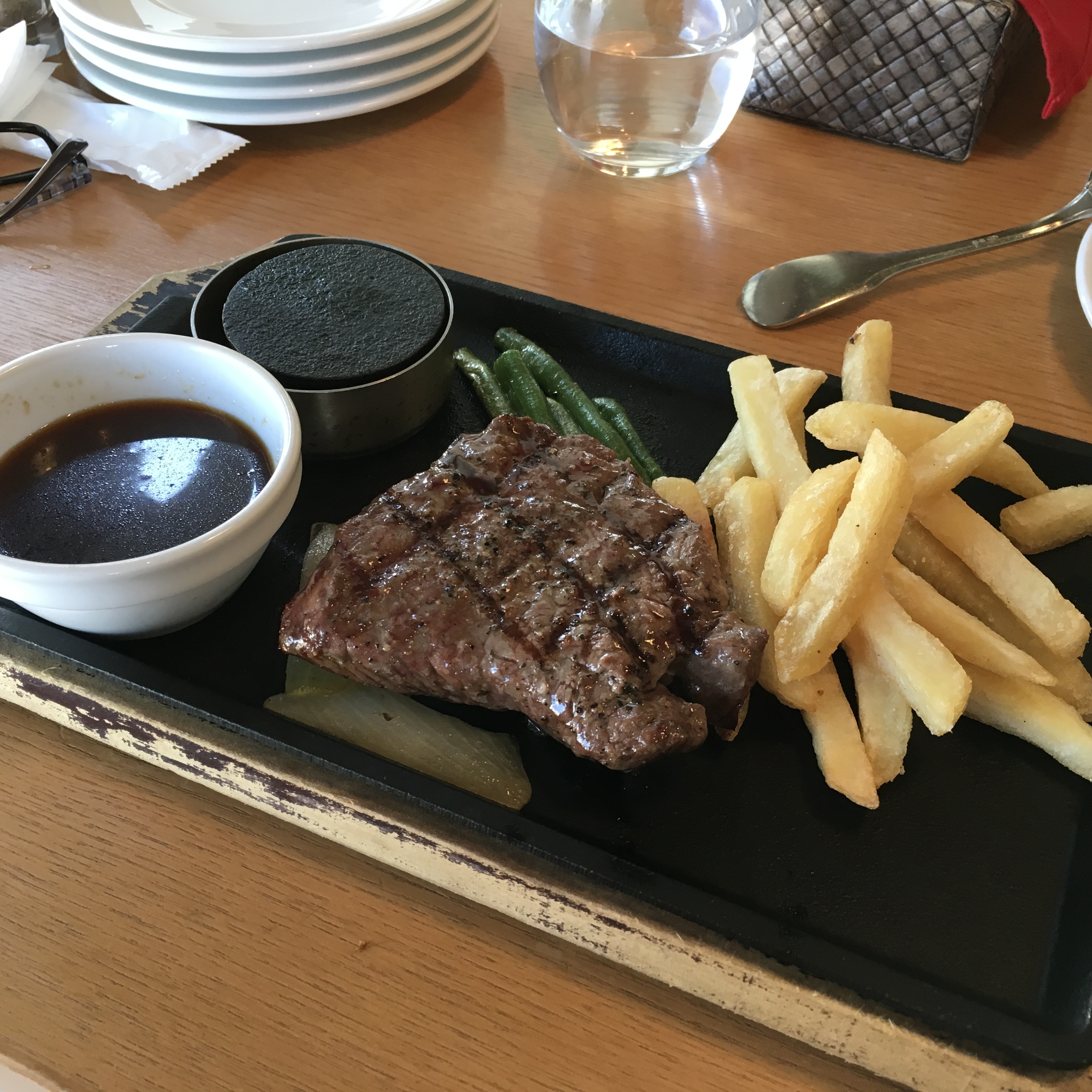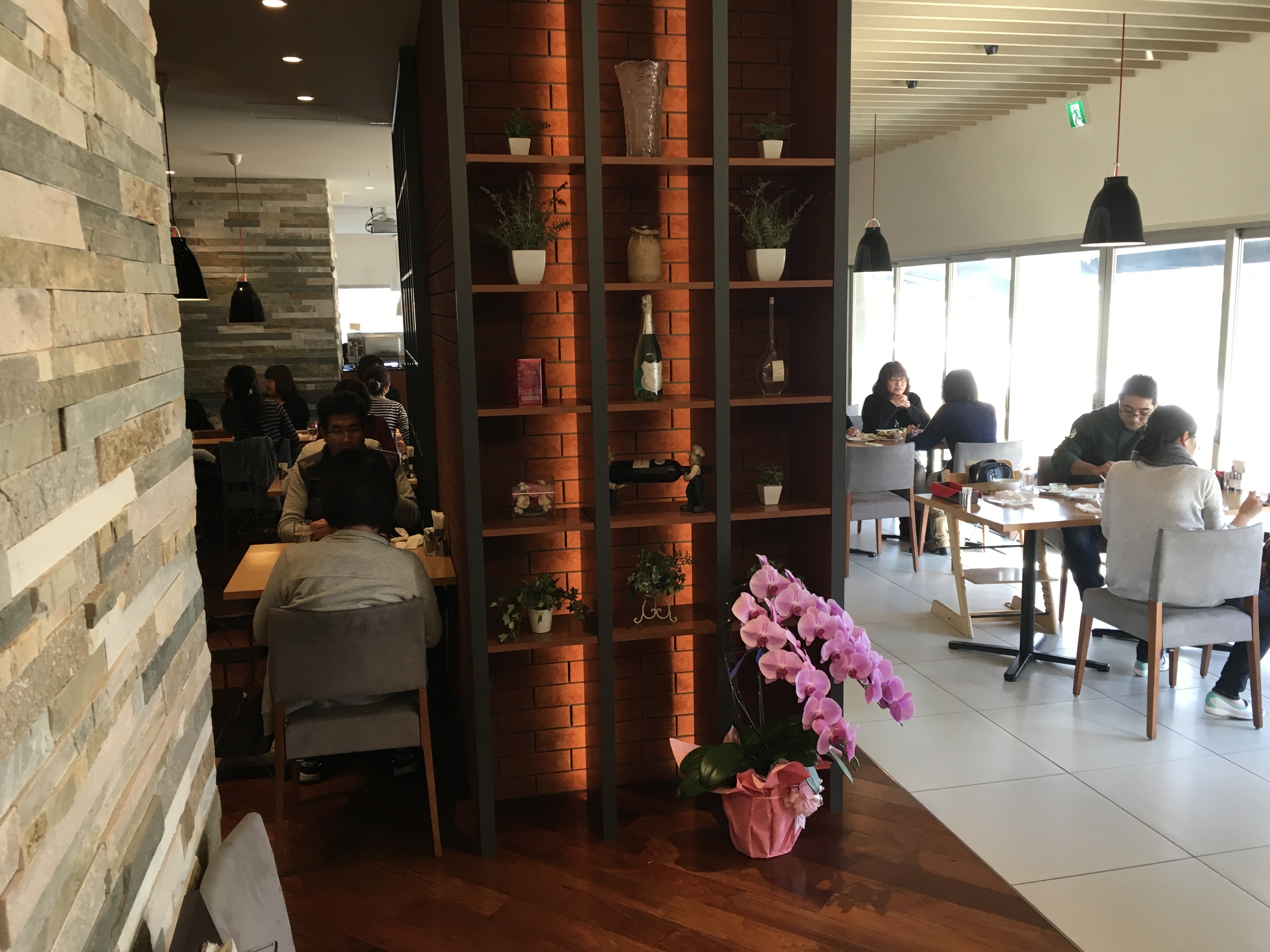 レストラン部分も結構なスペースがあって、少なくても50席はあると思う、写真ではわからないが外にも、パラソルつきのソファーが数席ある。ちょうどランチどきだったのか、ほぼ満席状態だった。