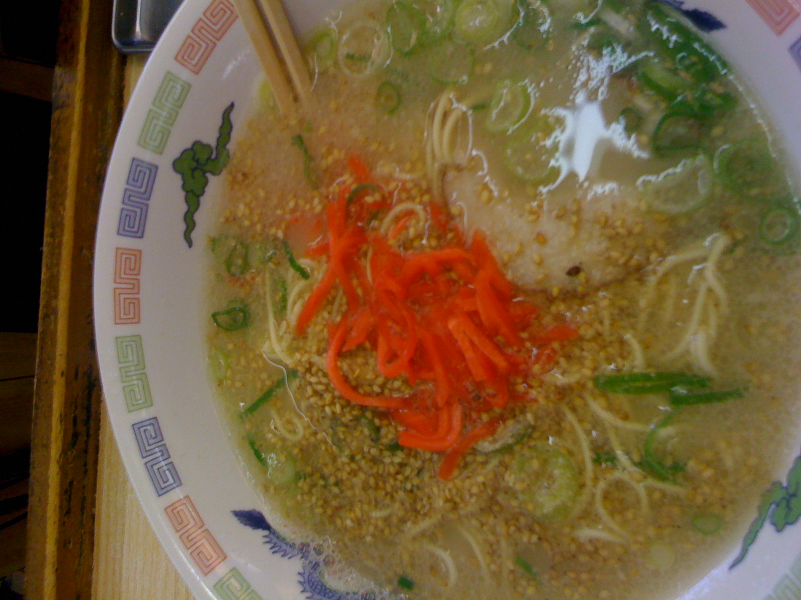 ここのラーメン屋さん会社の近くにあるのでチョクチョク利用するんですが、コストパフォーマンスの高さでお勧め、ラーメン自体は、むっちゃオーソドックスな博多ラーメンで、とんこつ、細めん、良くも悪くも癖がないと思います。