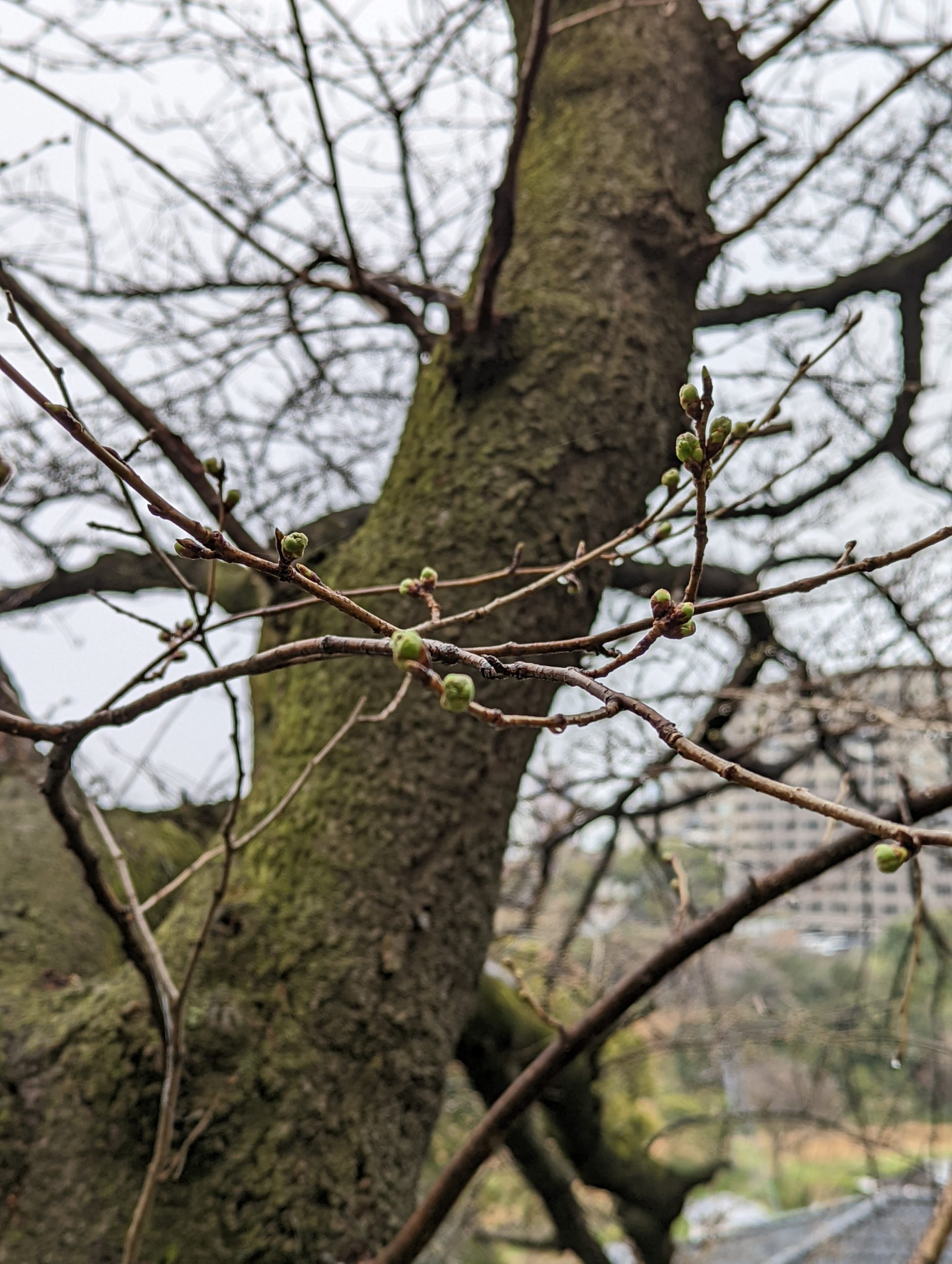 愛宕山のサクラの開花状況、2022By admin / 2022年3月14日 2022年03月14日時点のサクラ開花状況 2022/03/14時点 愛宕山の桜 今日の桜は、まだ、つぼみの状態だけど、先週よりつぼみが大きくなり、少し緑色が見えるようになってきた。 昨年の同日の開花状況 昨年2021/03/14 愛宕山の桜 昨年と比べると、ほぼ変わらない?もしくは、気持ちつぼみの膨らみが小さいのかな?