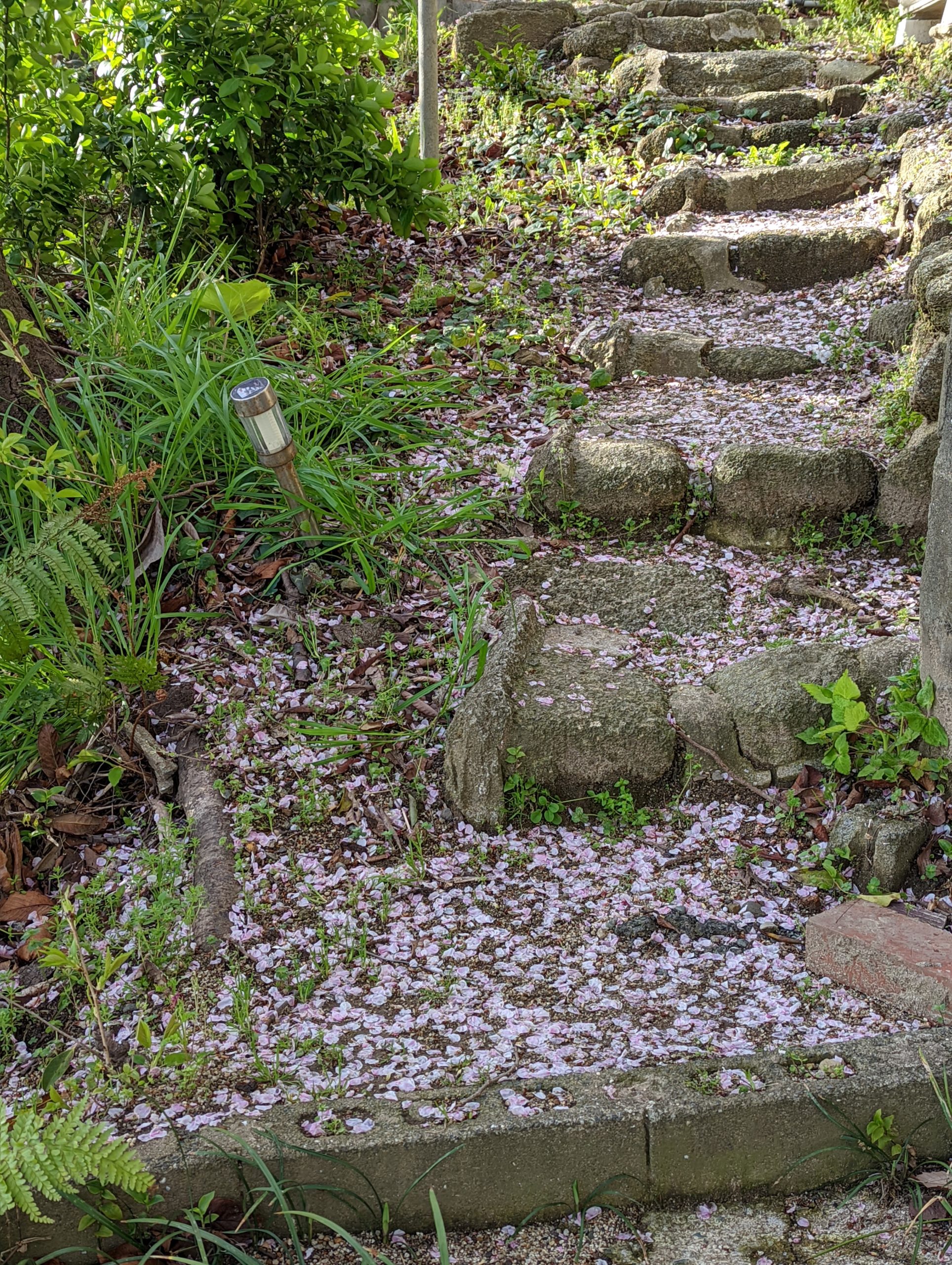 まだ何とか、花見できる程度のサクラの花びらはあるけど、地面に目を移すと、サクラの花びらがかなり散っているのがわかる。