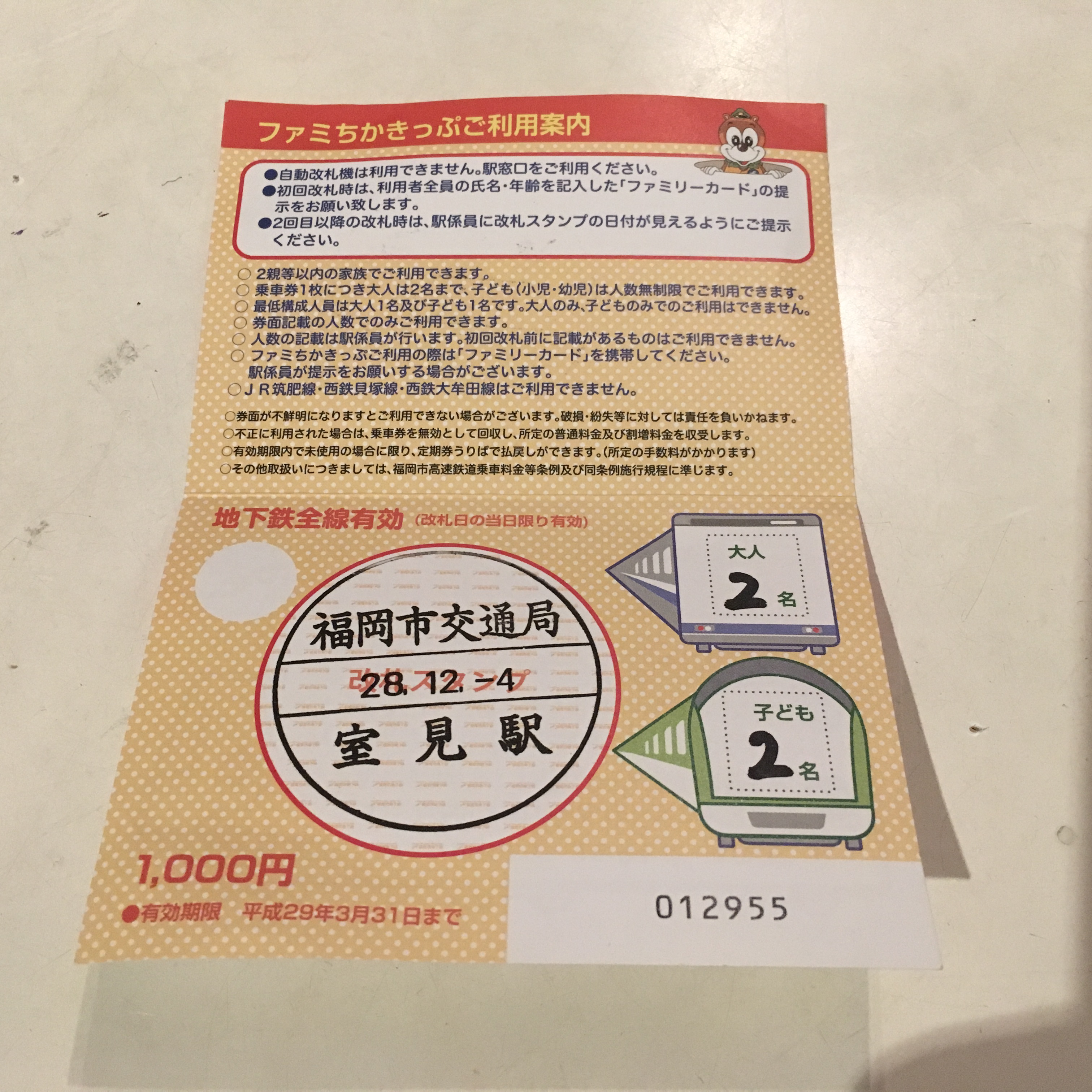 小学4年生と2年生の子供ふたりに、嫁さん、オヤジの家族4人で、室見駅→天神駅→(天神でモーニング、本屋)→天神駅→博多駅→(ヨドバシ、昼ごはん)→室見駅と、地下鉄にのり、交通費がたったの1000円